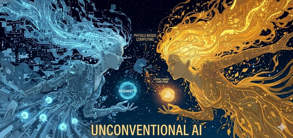 이러한 기술적 흐름이 단순한 이론을 넘어 산업의 중심이 되고 있다는 사실은 최근의 투자 사례가 증명합니다. 2025년 12월, 신생 스타트업 ‘언컨벤셔널 AI(Unconventional AI)’의 등장은 기술 업계에 큰 충격을 주었습니다.